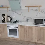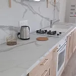 This apartment comes with a fully equipped kitchen and looks out onto the sea.